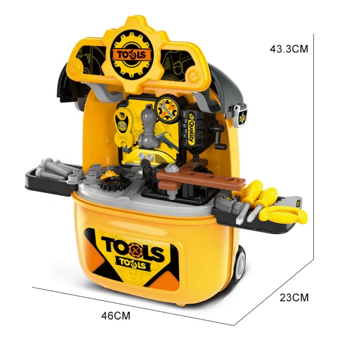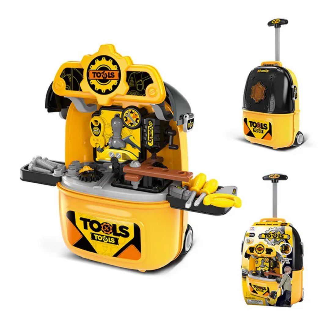 The highlight of this set is its portability. It features a sturdy suitcase design with smooth-rolling wheels and an extendable trolley handle. Whether heading to a playdate or tidying up after playtime, children can pack their tools away and wheel them around with ease.