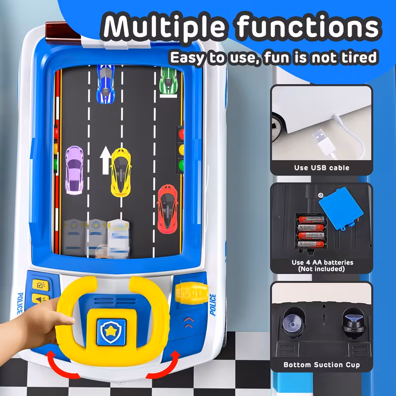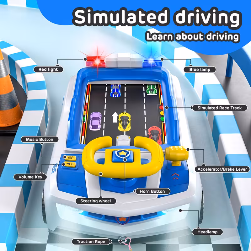Ignite your child’s imagination with the Adventure Police Car Game! This interactive toy combines the thrill of a police cruiser with a built-in simulated driving console. Featuring a real steering wheel and scrolling road display, it’s the perfect way for young heroes aged 3+ to develop hand-eye coordination while “patrolling” the streets.