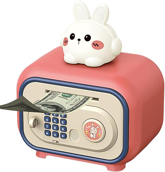The Bunny Guard Electronic ATM turns saving money into an interactive game. This isn’t your traditional coin jar; it’s a sophisticated personal safe designed to give children a sense of responsibility and security. With its modern design and adorable bunny topper, it serves as both a functional bank and a charming piece of room decor.
