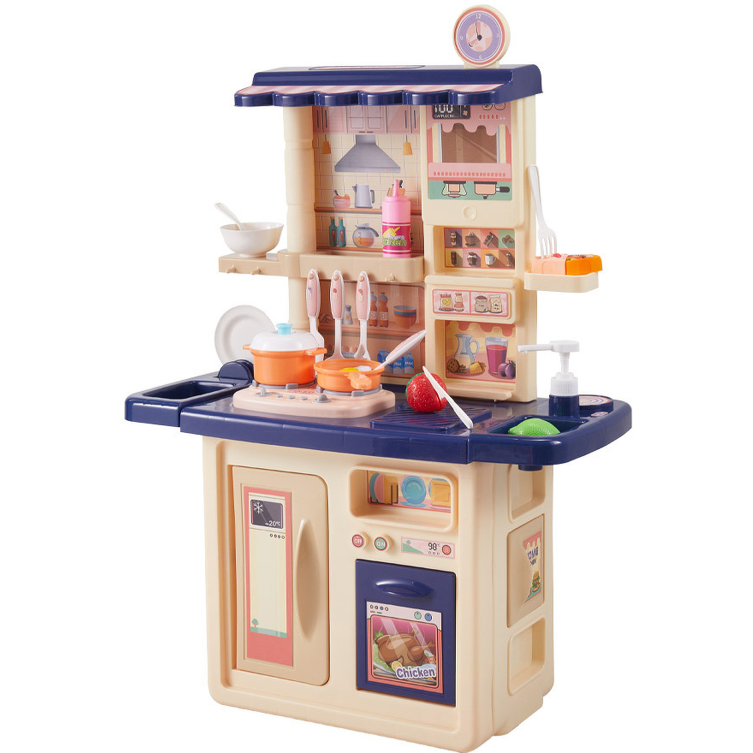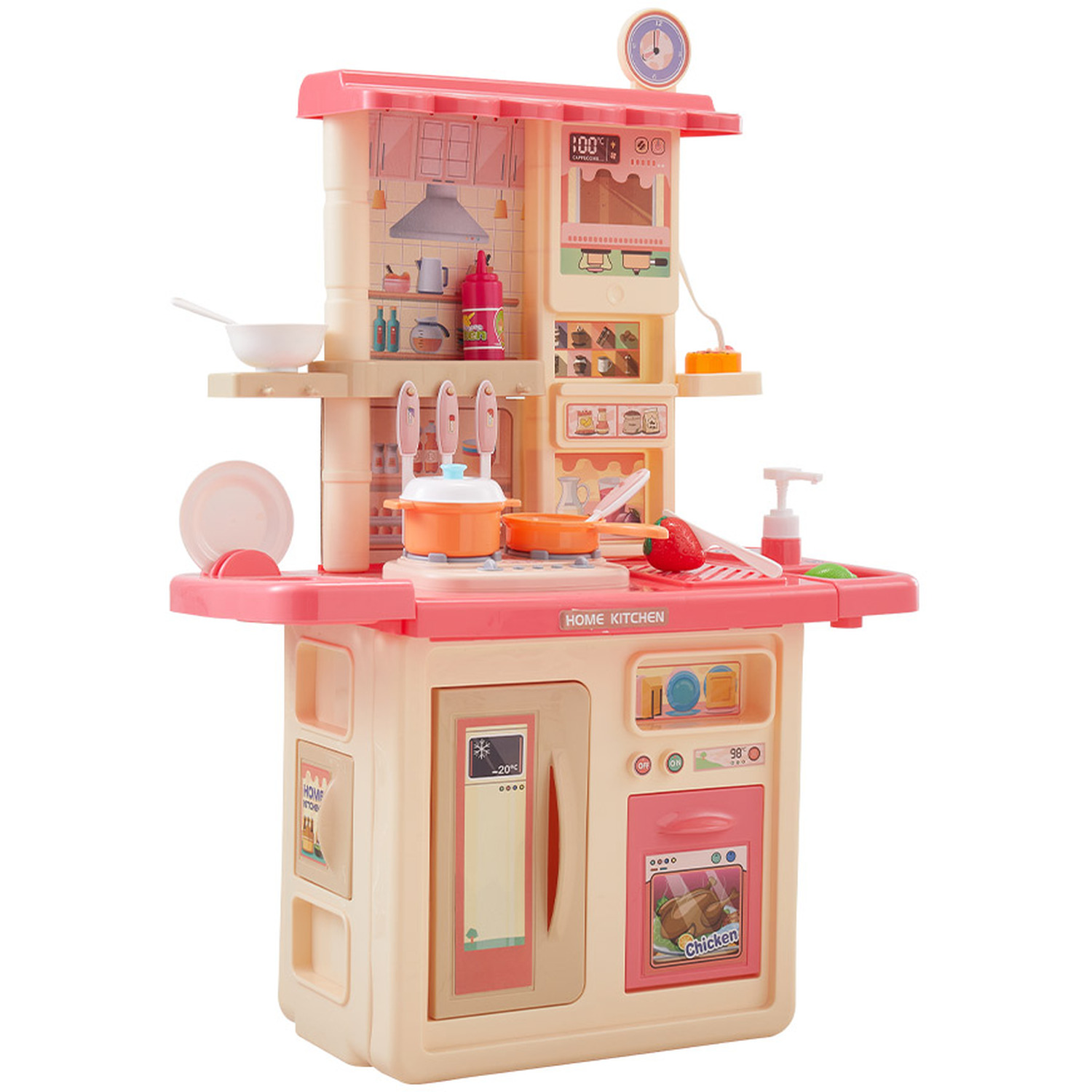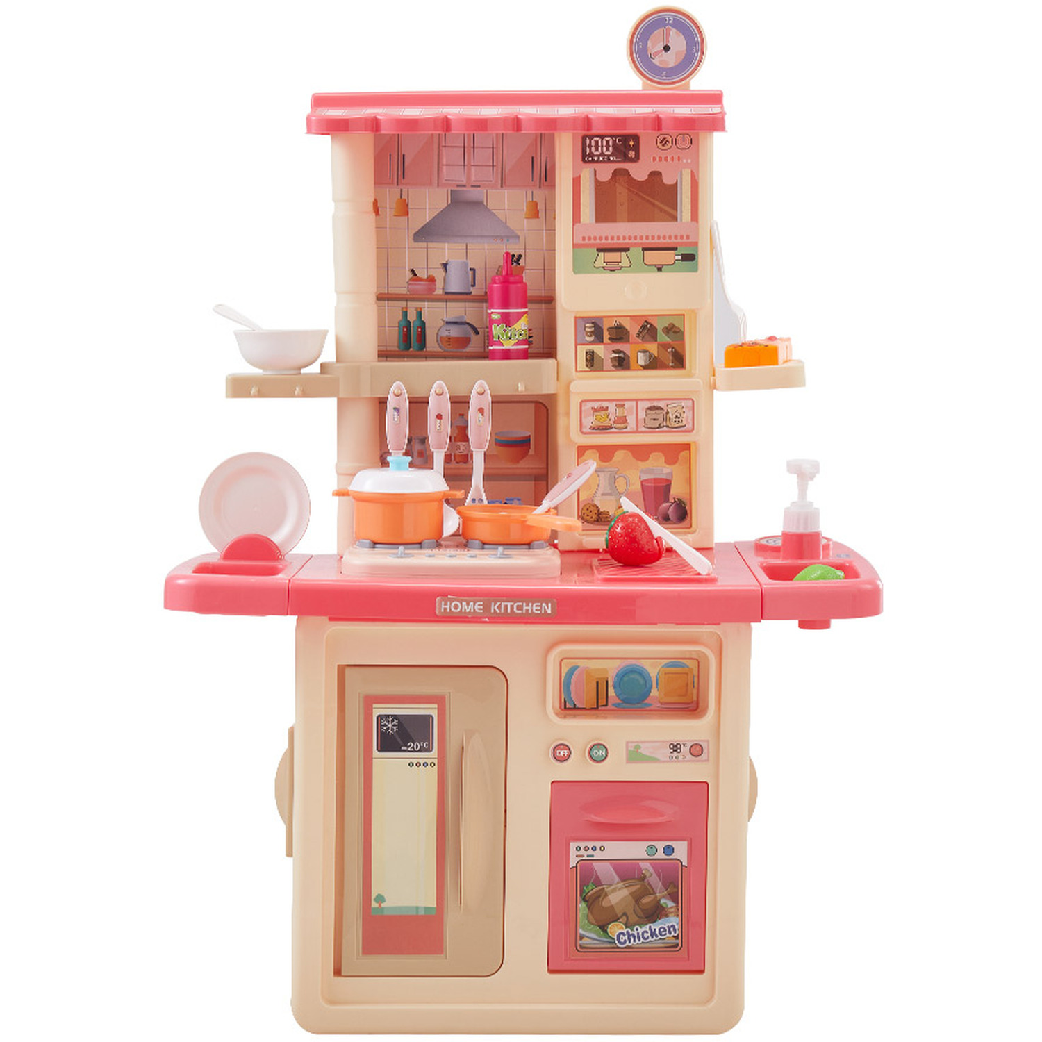 সম্পূর্ণ কিচেন সেটআপ: এই সেটে রয়েছে একটি সুন্দর চুলা, ওভেন, এবং রেফ্রিজারেটর যা খোলা ও বন্ধ করা যায়। ফলে শিশু তার কাল্পনিক খাবারগুলো মনের মতো করে রান্না করতে পারবে।