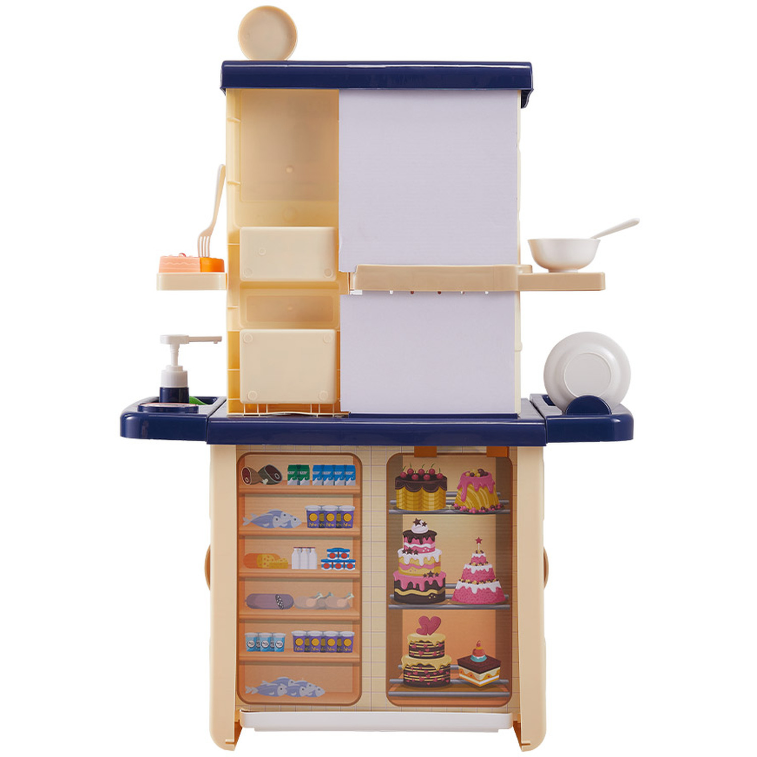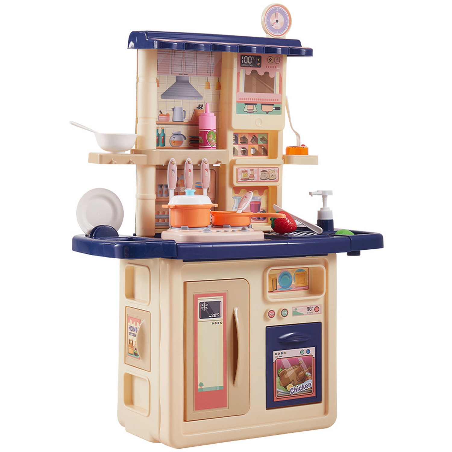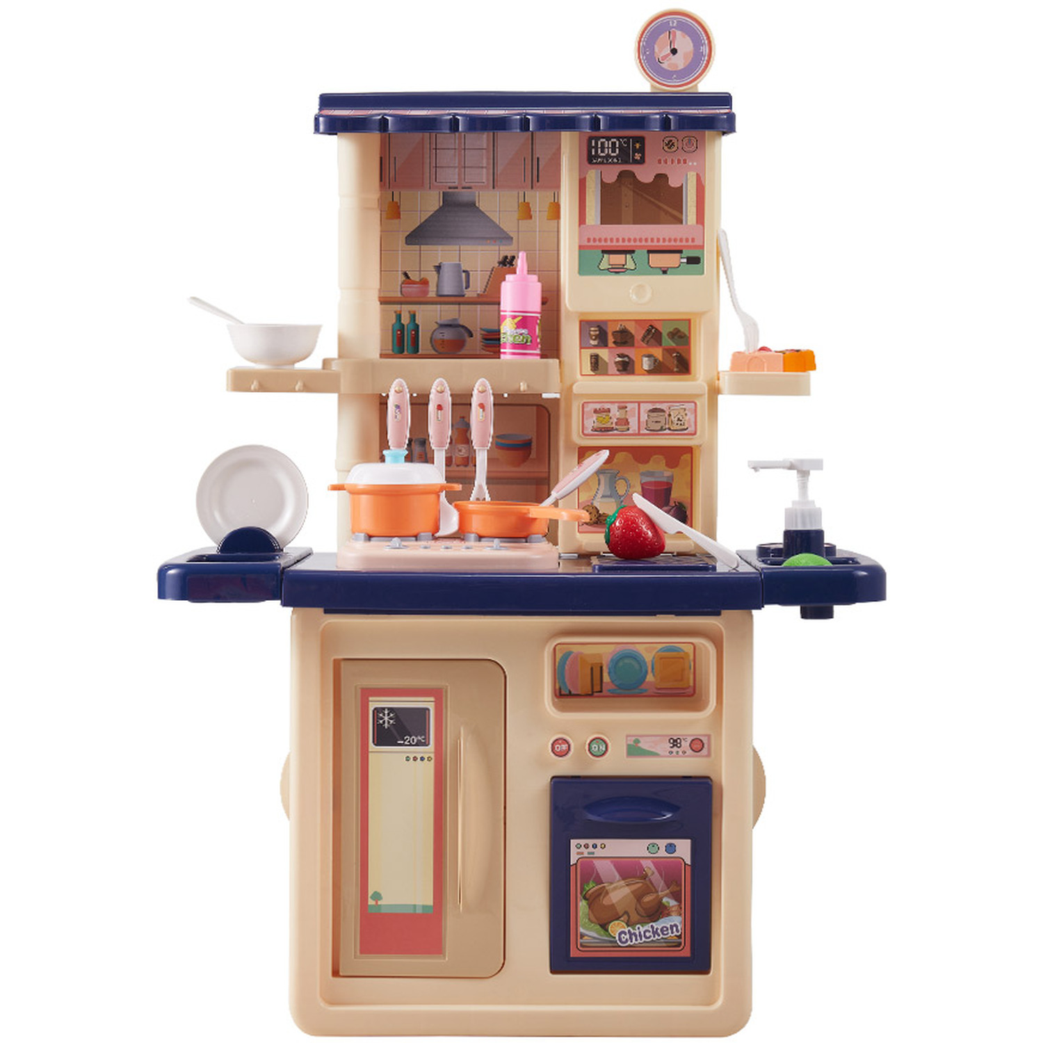 সম্পূর্ণ কিচেন সেটআপ: এই সেটে রয়েছে একটি সুন্দর চুলা, ওভেন, এবং রেফ্রিজারেটর যা খোলা ও বন্ধ করা যায়। ফলে শিশু তার কাল্পনিক খাবারগুলো মনের মতো করে রান্না করতে পারবে।