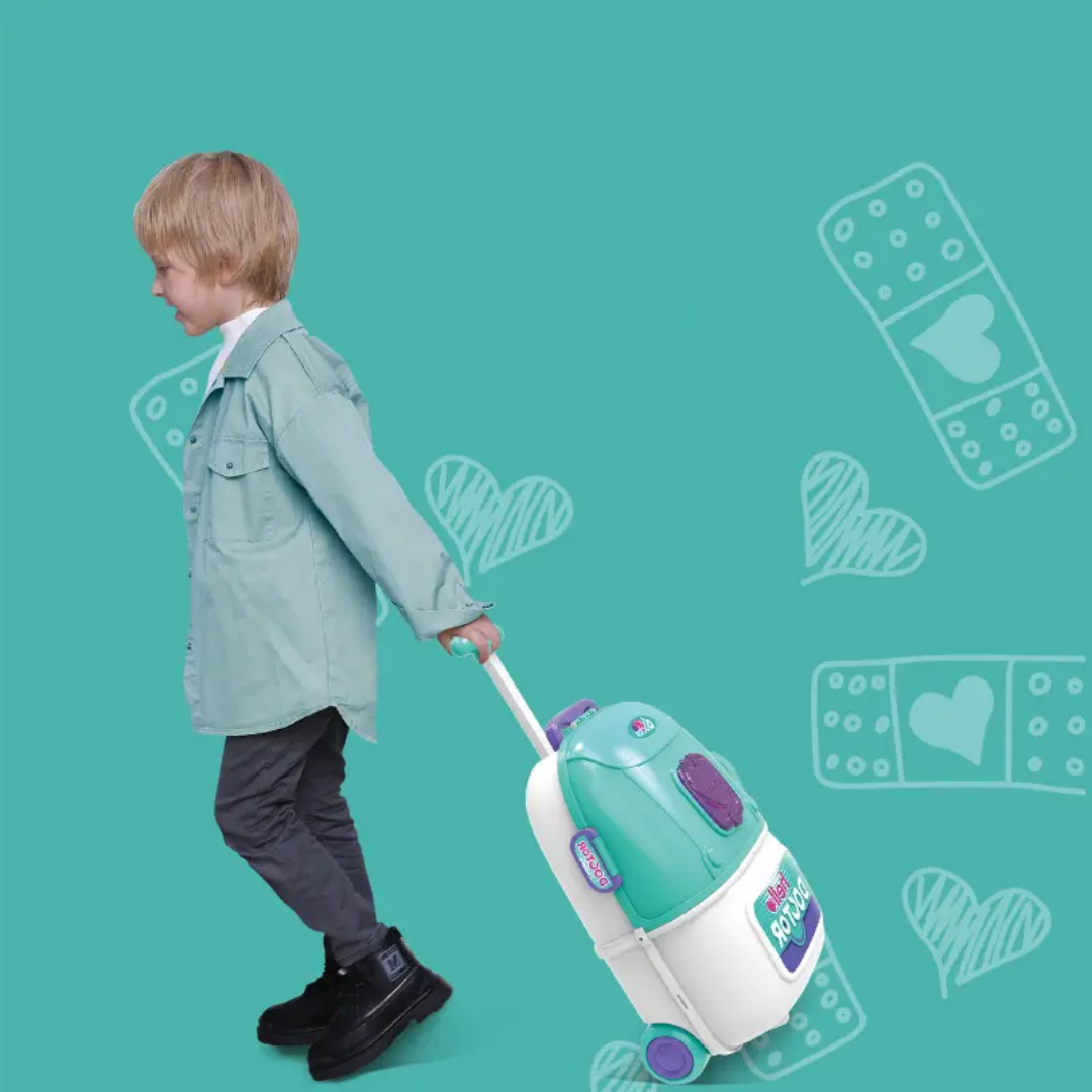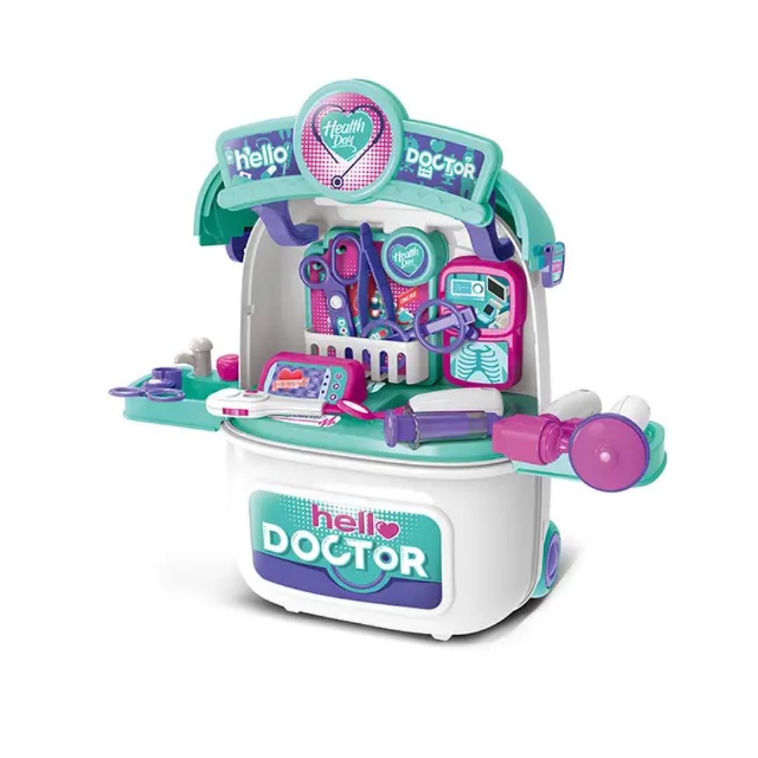 The Health Day 2-in-1 “Hello Doctor” Playset is a portable medical station that transforms from a rolling trolley suitcase into a fully equipped doctor’s office. Featuring realistic tools like a stethoscope, syringe, and X-ray monitor, this set is perfect for on-the-go imaginative play for children ages 3 and up.