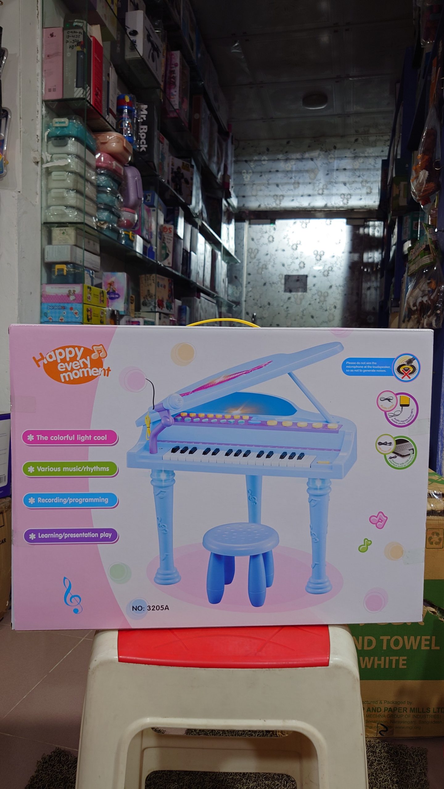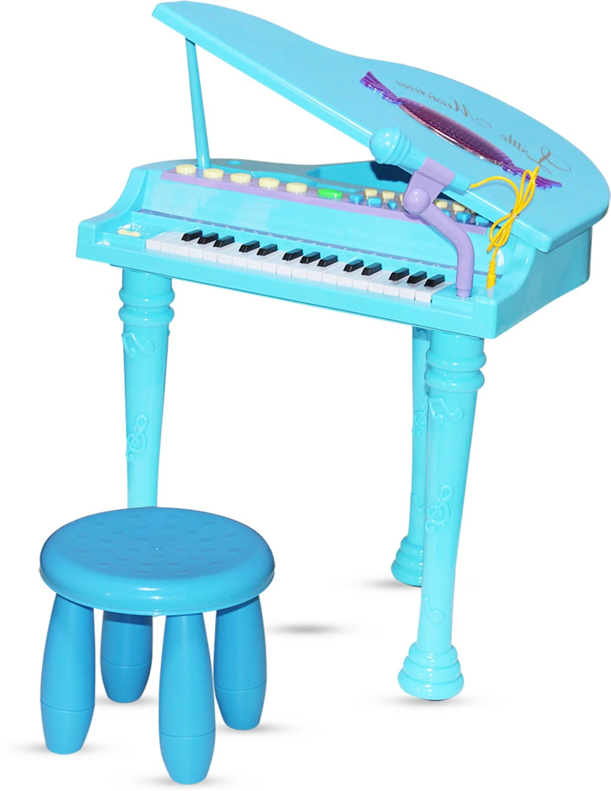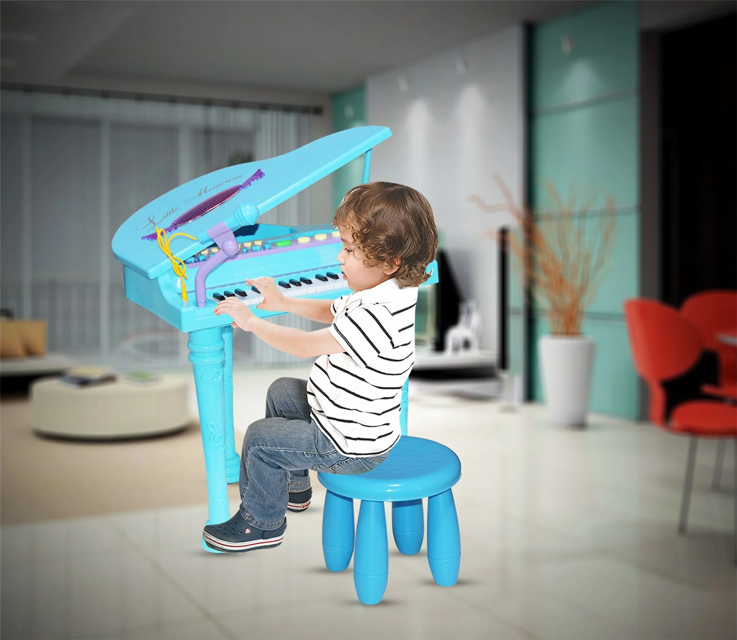 মাইক্রোফোন সংযোগ: পিয়ানোর সাথেই রয়েছে একটি কার্যকর মাইক্রোফোন, যাতে শিশুরা বাজানোর পাশাপাশি নিজের প্রিয় গানটিও গাইতে পারে।