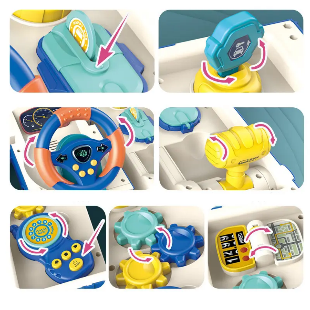 Control Steering Wheel: A large, colorful steering wheel allows children to simulate real driving operations and navigate their imaginary route.