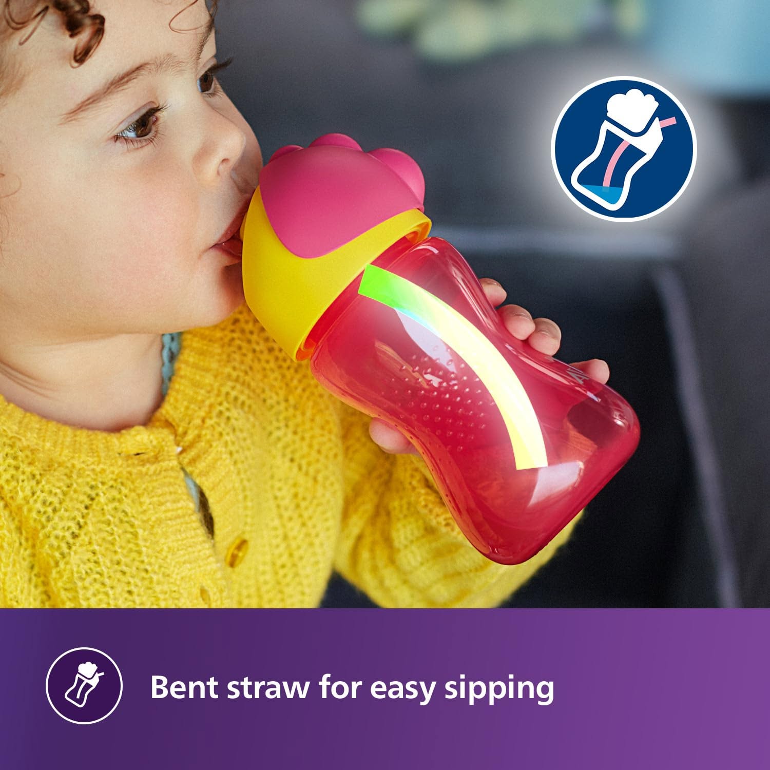 The Philips Avent Healthy Straw Cup (12m+) is specifically designed to support the healthy oral development of your growing toddler. This pack features two vibrant, easy-to-hold cups—one in green and one in pink, both with contrasting color tops. Suitable for children 12 months and older, the cups have a generous 10oz/300ml capacity, perfect for keeping your child hydrated throughout the day.