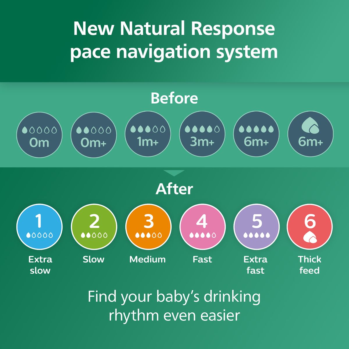 Natural Response Teat: Supports a baby’s individual drinking rhythm, allowing them to pause and breathe without milk continuing to flow.